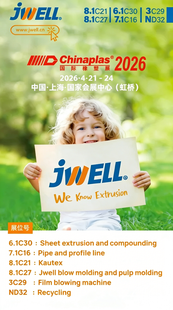 本次参展,我司全方位展示全产线解决方案,6大展位各有侧重、精准发力,从片材、管材到吹膜、吹塑,从纸浆模塑到回收再生,一站式满足您的多元化需求,解锁高效、绿色、智能的橡塑生产新路径。