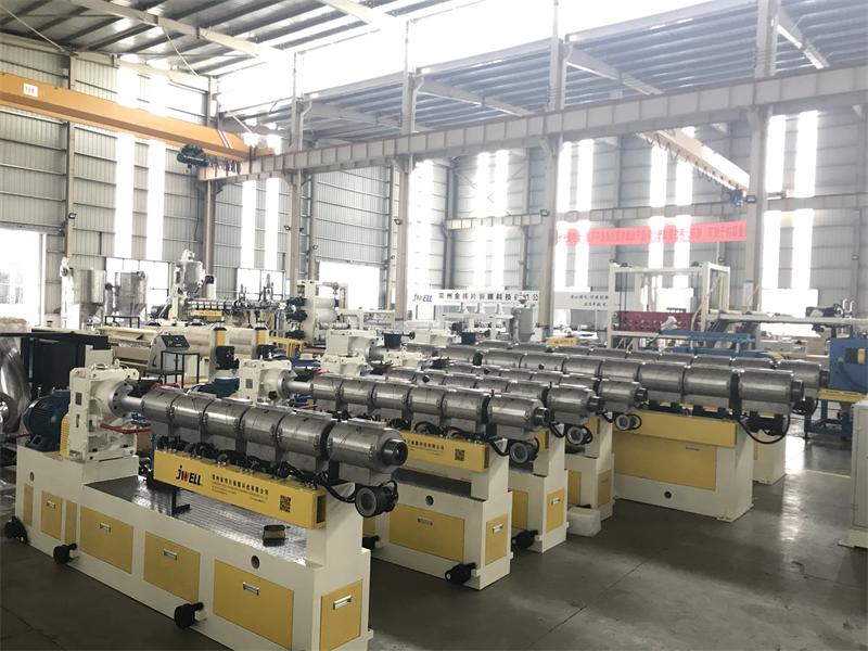 主要产品包括:各类生物可降解成套设备;各类塑料板材、片材、防水卷材、车衣膜、POE胶膜和各种功能膜生产线;各类塑料管道生产线、各类塑料异型材生产线;各类塑料中空吹塑成型机;各类化纤纺丝工程成套设备;各类塑料回收造粒设备,螺杆机筒、挤出平模头、换网器、辊筒等配套件。