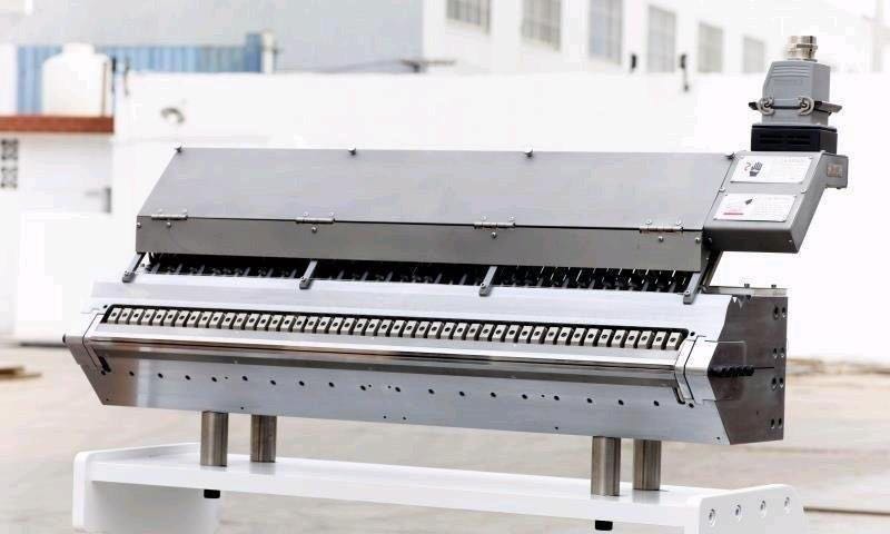 The die head adopts an extension V shape water-drop type flow channel, with the shunt technology and special triangle stabilize structure. To composite layer and improve the precision of the extrusion process to eliminate 'M' shape and 'W' shape flow patterns effectively. The upper die lip using push-off type manual fine-tuning + automatic fine-tuning one-piece die lip, manual adjustment range is ±1mm, automatic adjustment range ±300um; About the automatic die lip adjustment control parts ,we use currently very advanced fully closed loop control system and the automatic gauging system makes the product thickness in±2% precisely.